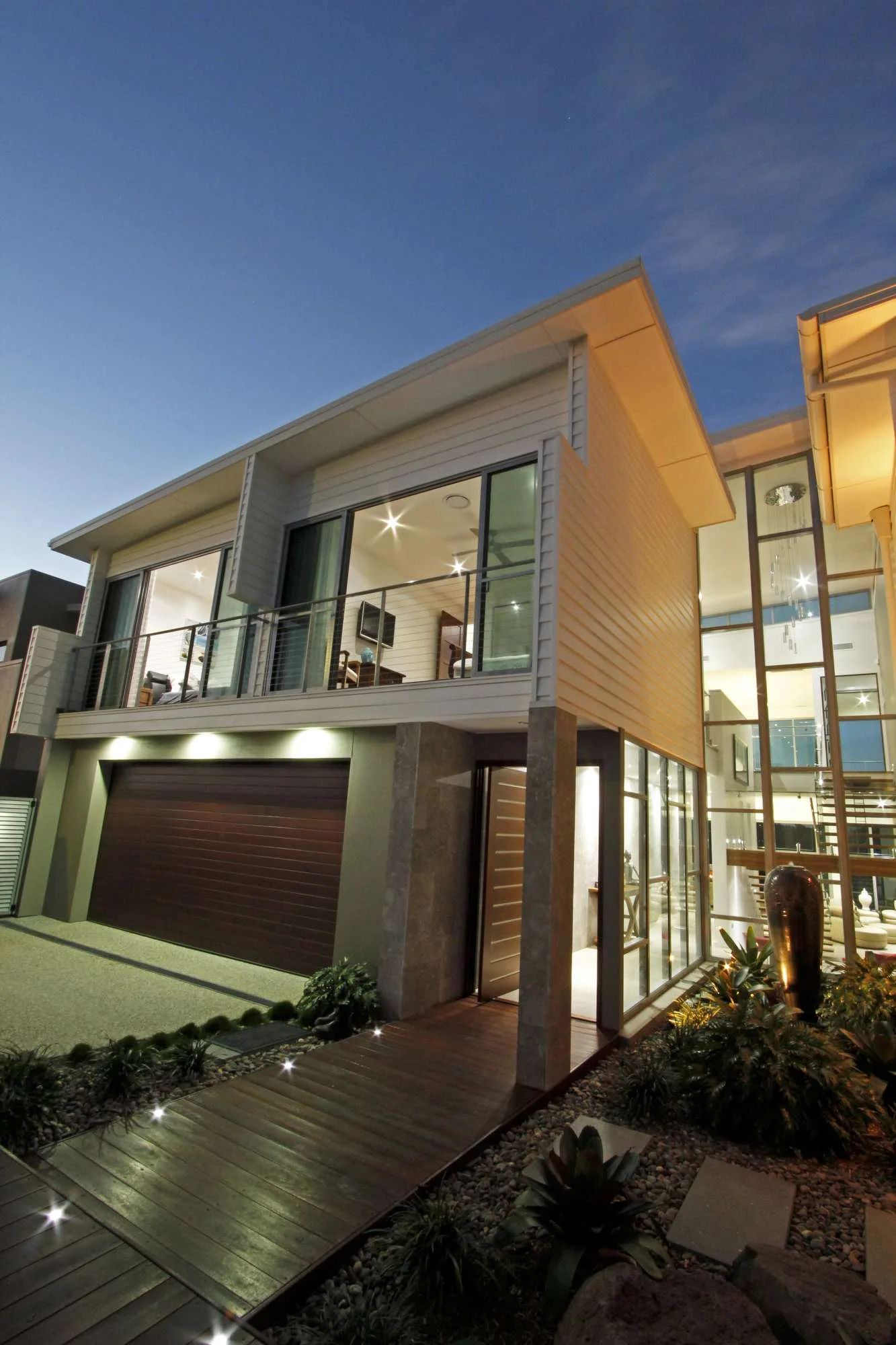 The pool is clever in design and runs down the side of the house, allowing for extended lap length and providing and ambient feature as seen from the tv room via a long low kick window.